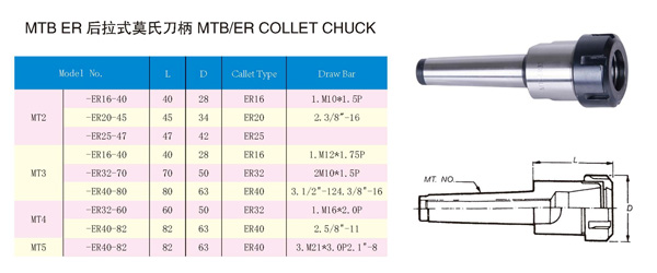 MTB ER 后接式莫氏刀柄 MTB/ER COLLET CHUCK
